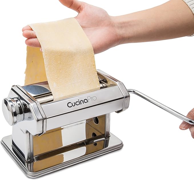 - CucinaPro Pasta Maker Deluxe 5 Piece Set - Includes hand crank, countertop table camp and cleaning brush
