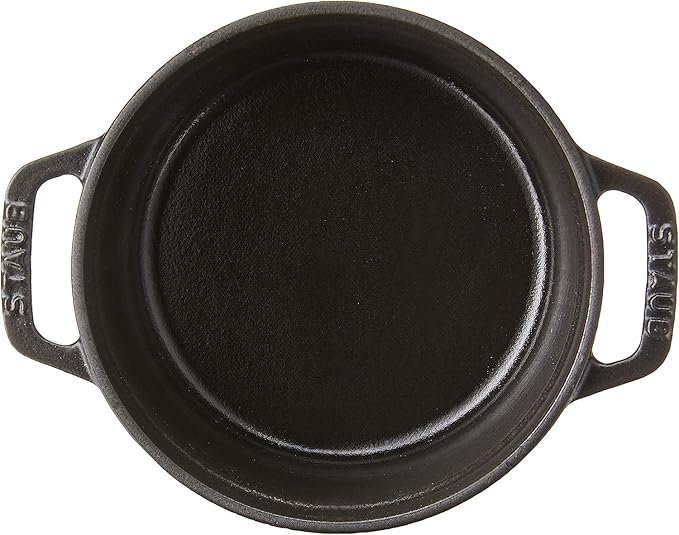 STAUB Cast Iron Dutch Oven 0.5-qt Round Cocotte, Made in France, Serves 1, Matte Black