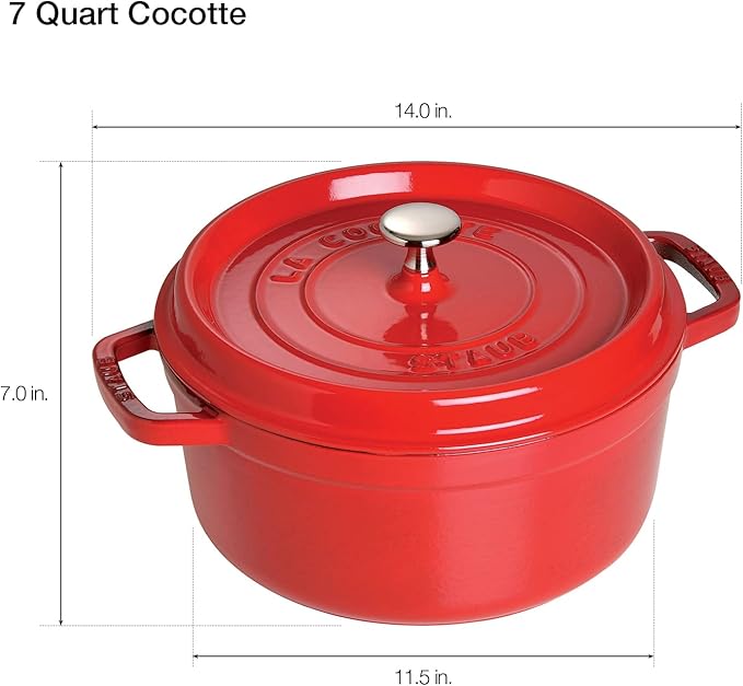 Staub Cast Iron 7-qt Round Cocotte - Cherry, Made in France
