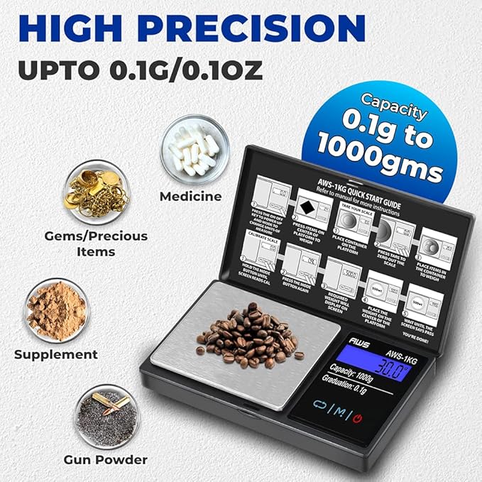- PRECISE MEASUREMENT: The AWS-600 has a capacity of 600g x 0.1 offering accuracy and precision with every weigh. Tried and true measuring while offering a modern and easy to use scale. Our scale offers all weighing units in a rainbow of color changing modes to be ever so easy on the eyes even in dim lighting. OVER 20 YEARS of experience in manufacturing the most reliable scales on the market.