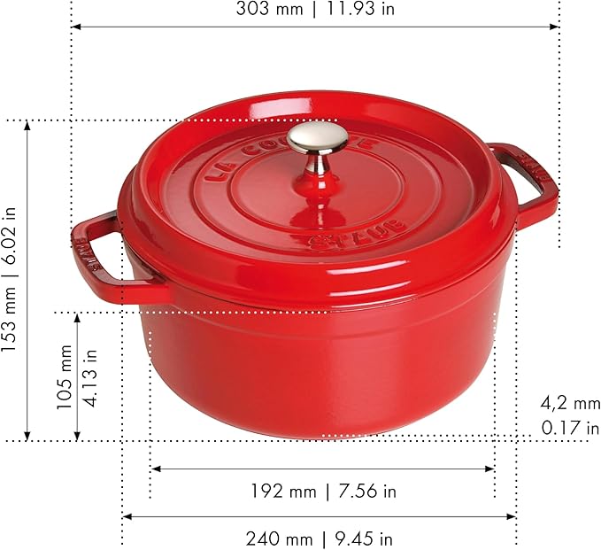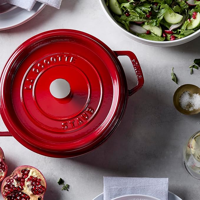 STAUB Cast Iron Dutch Oven 4-qt Round Cocotte, Made in France, Serves 3-4, Cherry