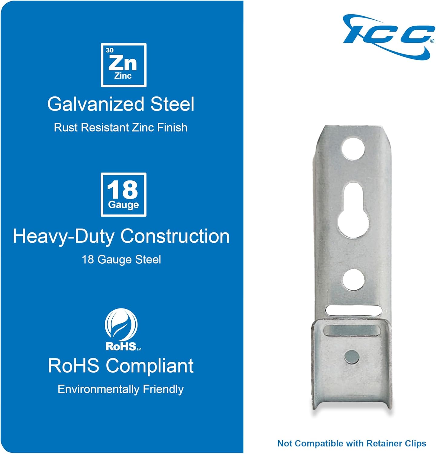 - Built to Last: Made from 18-gauge galvanized steel and finished with a rust-resistant zinc coating, ICC Wall Mount J-Hooks offering reliable support for cables