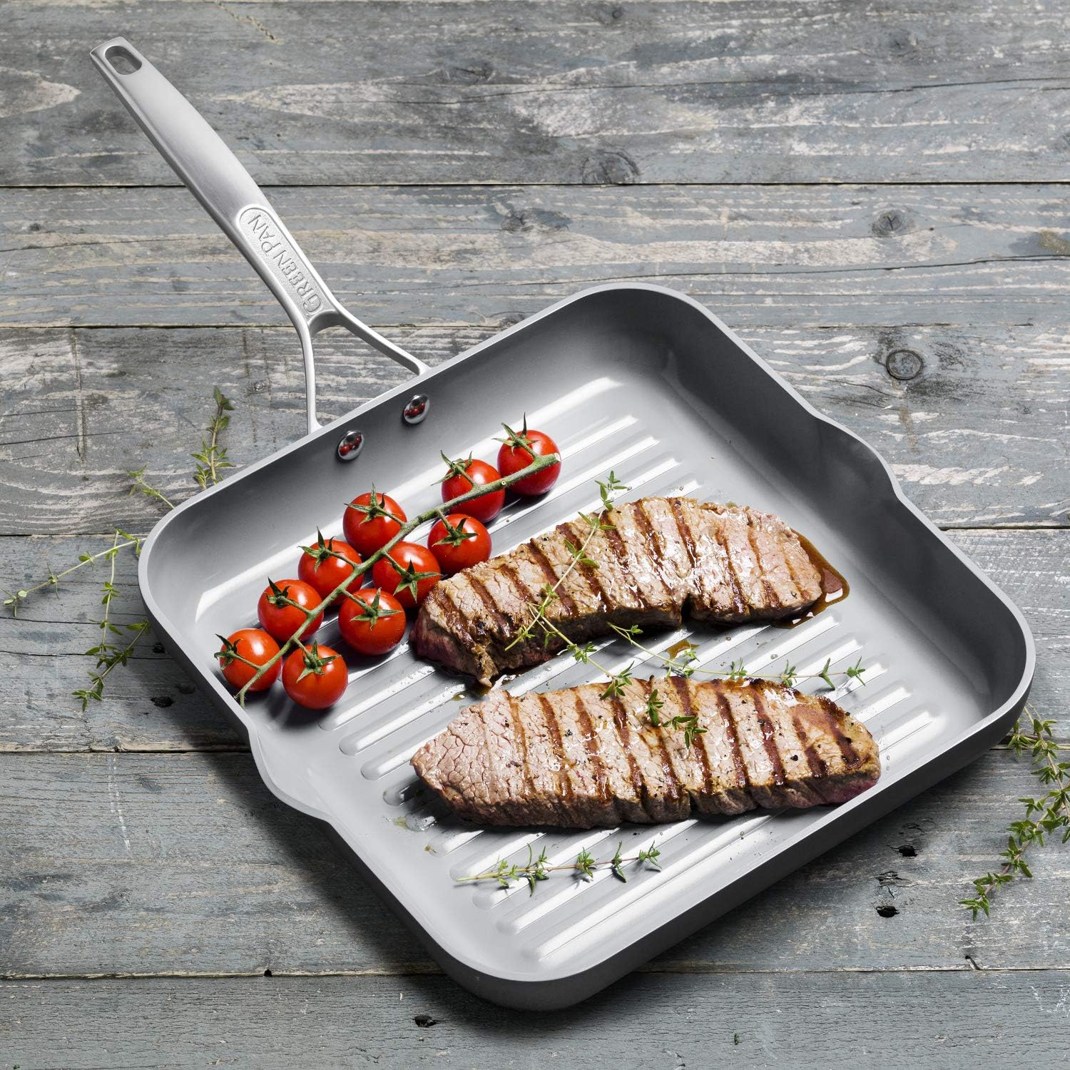GreenPan Paris Pro Hard Anodized Healthy Ceramic Nonstick, 11" Square Grill Pan, PFAS-Free, Dishwasher Safe, Grey