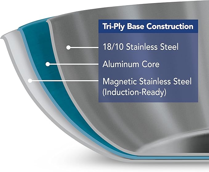 - Tri-ply construction: For precise heat distribution and top-notch cooking performance for any kitchen