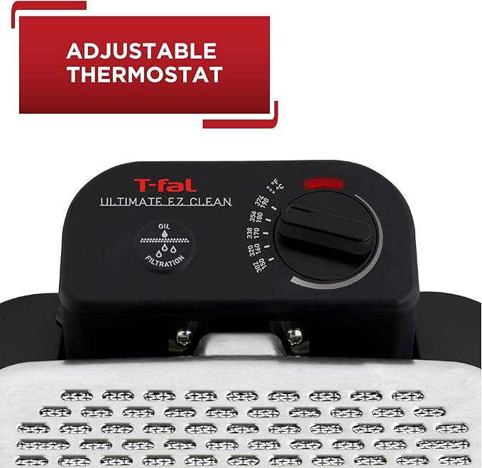 T-fal 3.5L Stainless Steel Deep Fryer with Basket for Home Use, 1700W, Deep Fryer with Oil Filtration, Temp Control, Digital Timer