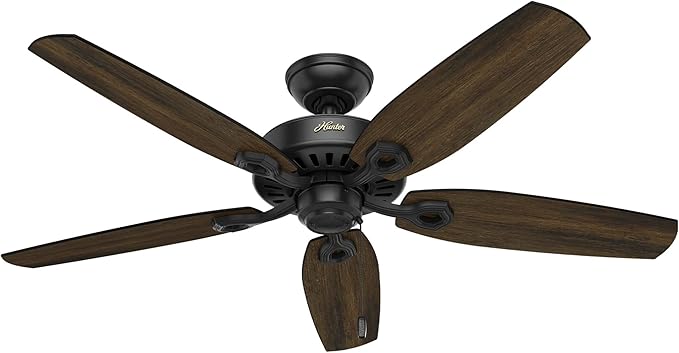 Hunter 52 inch Indoor Ceiling Fan No Light with Pull Chain - Black Ceiling Fan without Light, Standard Mount, 5 Blades, For Bedroom, Living Room, or Kitchen - Builder Elite 53243, Matte Black