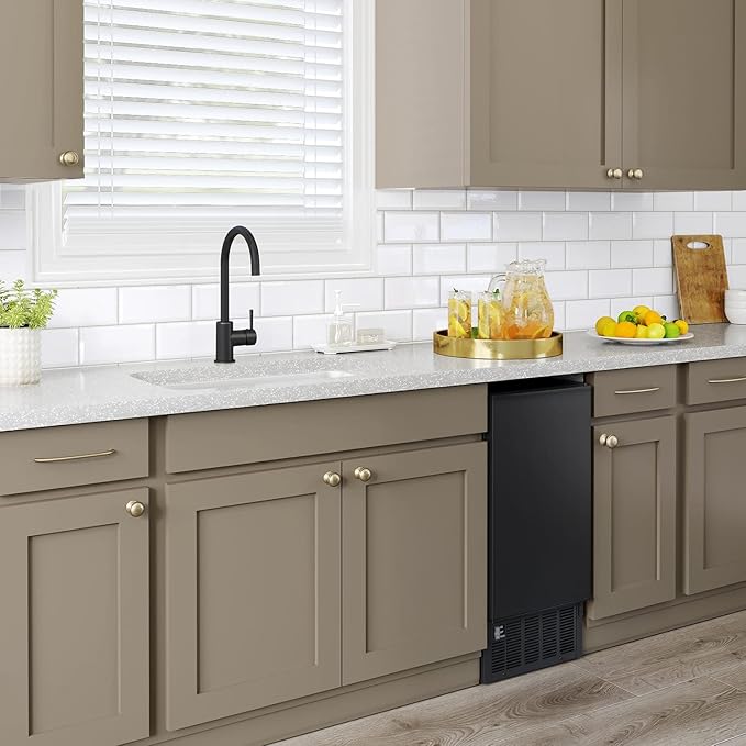 - Commercial-grade stainless steel door; Removable ice bin; Computerized controls; For freestanding or built-in applications; Reversible door; Adjustable leveling legs; Ice scoop included