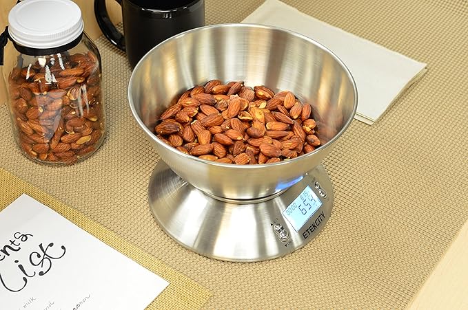 Etekcity Food Kitchen Scale with Bowl, Digital Weight Scale for Food Ounces and Grams, Cooking and Baking, Timer, and Temperature Sensor, 2.06 QT, Stainless Steel