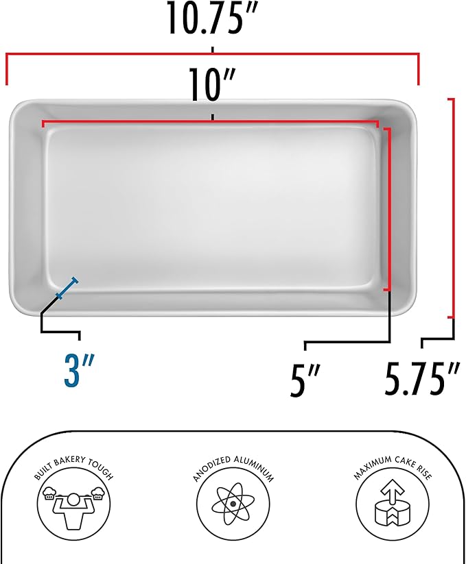 - 18-Gauge Anodized Aluminum - Easy release and clean up. Safe for citrus-based foods unlike traditional bakeware. Will never rust, peel or flake. No extra metals, chemical additives, dyes, PFAS, CFC’s, PTFE’s or PFOA’s. Hand wash recommended.