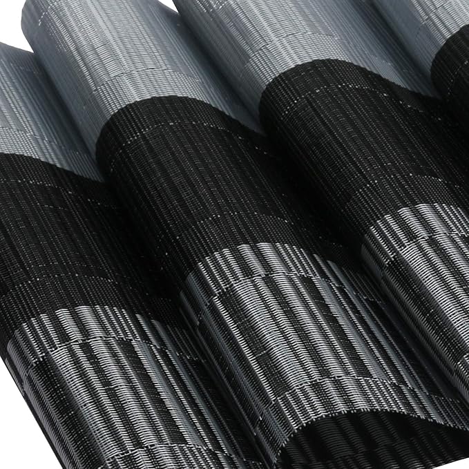 SHACOS Woven Vinyl Placemats for Dining Table Set of 6 Non Slip PVC Bamboo Basket Weave Table Place Mats (6, Ombre Black Gray)
