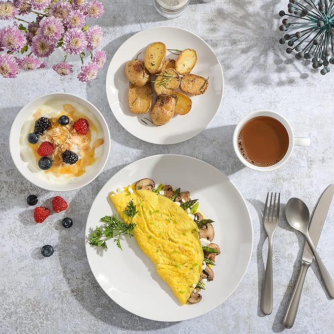 - CLASSIC DESIGN: a classic white coupe shape dinnerware set with everyday elegance.