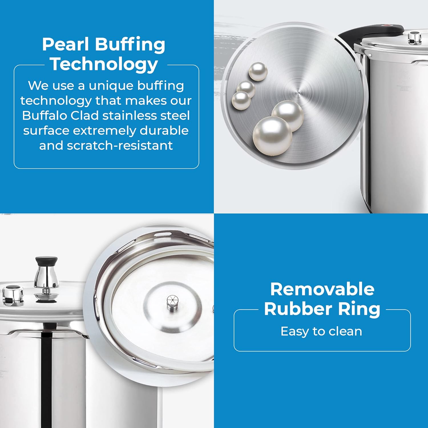 Buffalo Pressure Cooker 21 Qt Stainless Steel - Large Canning Pot with Lid for Home, Commercial Use - Easy to Clean Any Stove Top Pressure Canner, Can Cooker - SG Certificate QCP420
