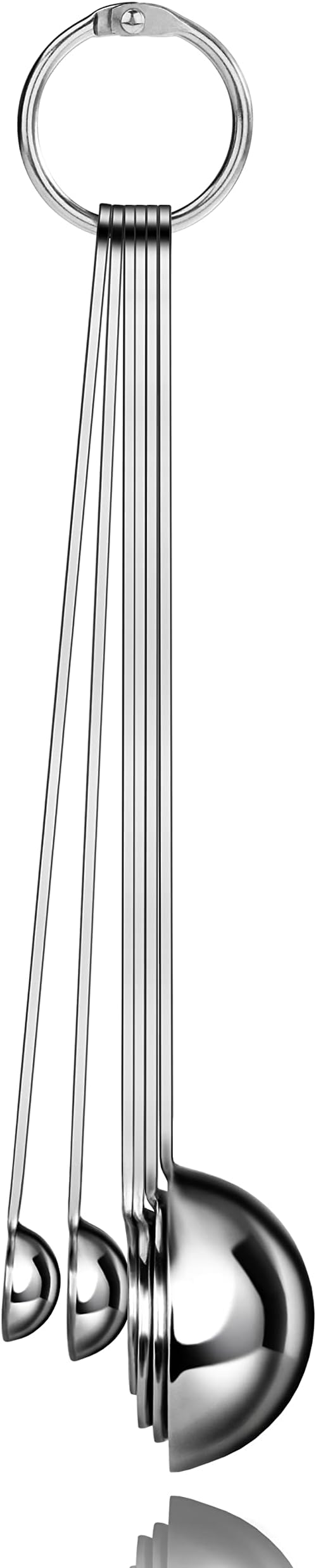 - Set includes: 1/8-tsp., 1/4-tsp., 1/2-tsp., 1-tsp., 1/2-Tbsp. and 1-Tbsp