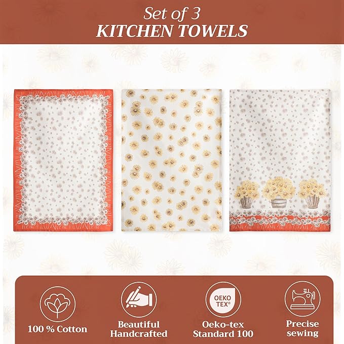 - Package Includes: Set of 3 cotton kitchen towels, each measuring 20" x 27.5". These versatile dish towels double as bar or tea towels, adding charm to your kitchen. Perfect for Thanksgiving decor, Christmas, or fall decorations for home. Designed in Europe and made in India