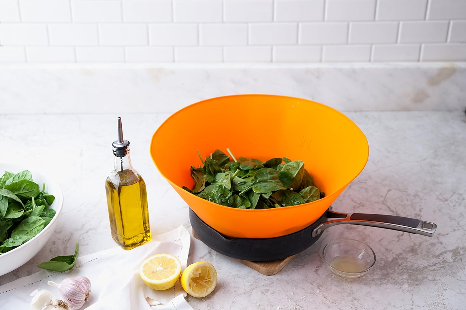 - SPILLOVER STOPPER: Perfect for preventing spillovers when sautéing lots of veggies and greens in overfull pan.
