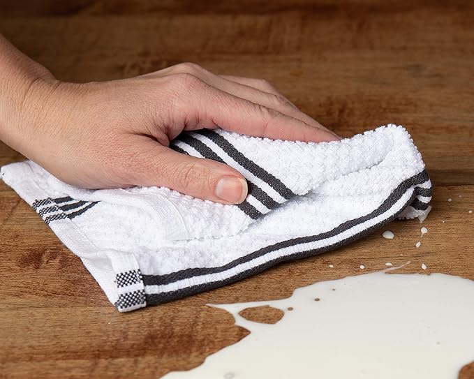 - SOFT & ABSORBENT: These thirsty dish cloth kitchen towels are designed with a popcorn terry construction to soak up water quickly. The dishcloths are highly absorbent and great for drying, cleaning, scrubbing, or achieving any other household task.