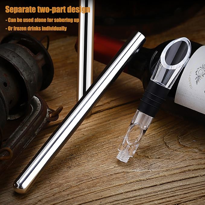 - 🍷【SAFE & ULTRA DURABLE】This wine chiller is made of 304 food-grade stainless steel & BPA-free acrylic. Durable, corrosion-resistant, safe and environmentally friendly. The premium stainless steel Ice-less wine chiller rod can keep the original taste of the wine while reducing the temperature of the wine without diluting the wine.