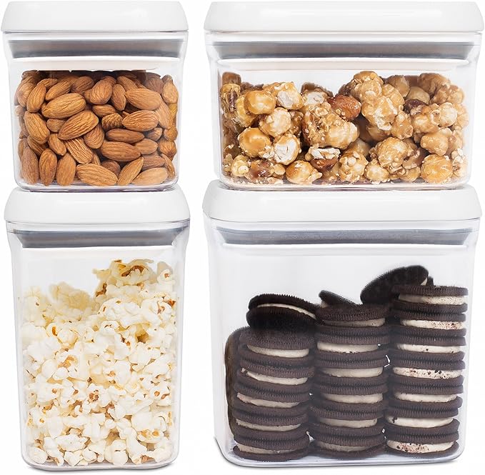 - EASY TO OPEN TWIST-LOCK LID: Each canister is equipped with a smooth twist-lock lid, creating an airtight seal thatβs easy to open and close. The rounded corners of the containers also allow for effortless pouring, preventing spillage while dispensing food.