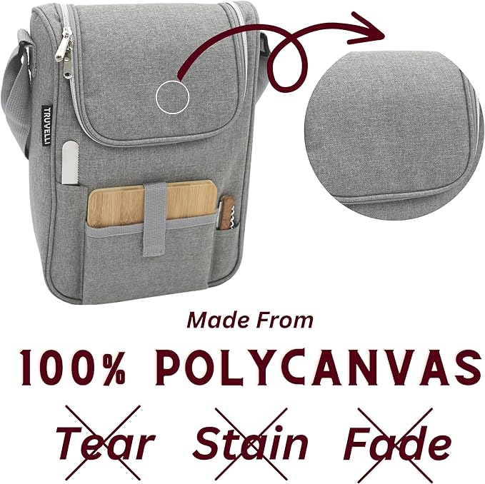 - CLASSY GIFT: Give this French inspired insulated wine and cheese bag. The tote is durable, water proof and made of 100% polycanvas. It will not tear, stain or fade. Rated best wine lovers gifts for 2023.