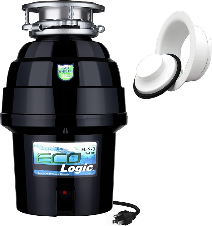 Eco Logic EL-9-DS-WH 9 Deluxe Designer Series Food Waste Disposer with White Sink Flange, 3/4 HP