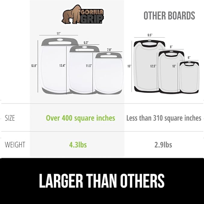 GORILLA GRIP BPA-Free Reversible Kitchen Cutting Board Set of 3, Nonporous, Juice Grooves to Catch Liquid, Slip Resistant Handle Border, Dishwasher Safe, Durable Large Food Chopping Boards, Gray