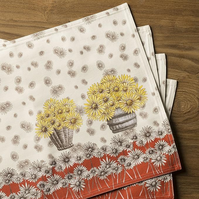 - Package Includes: Set of 4 cotton placemats, each measuring 13 x 19 inches. A simple yet stylish way to enhance your dining table or coffee bar. Perfect for Thanksgiving decor, Christmas dinners, or everyday fall decorations for home. Designed in Europe and made in India