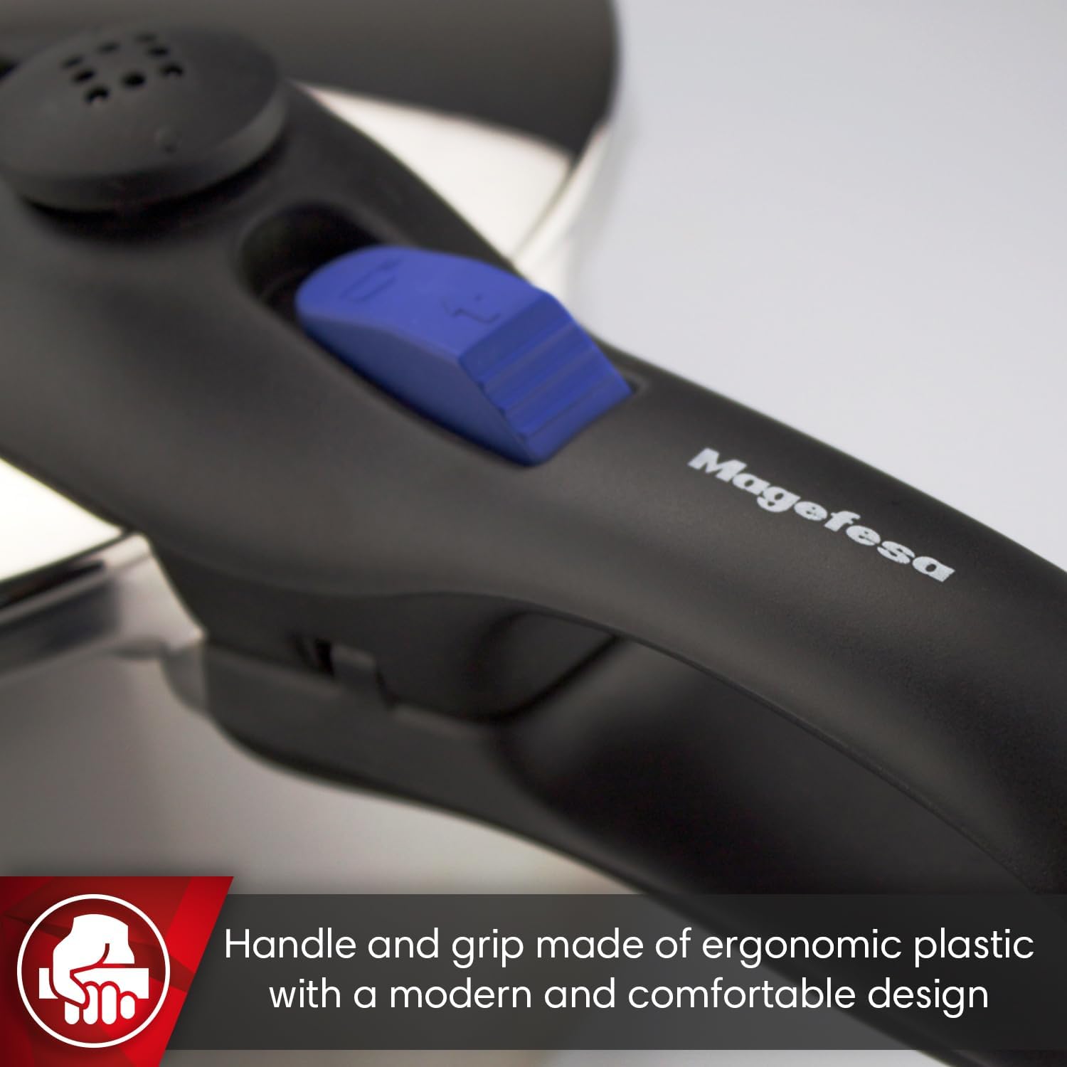 MAGEFESA Favorit 6.3 Qt Pressure Cooker – Easy-to-Use Fast Cooking Pot, 18/10 Stainless Steel, Induction Compatible, Even Heat Distribution, Works on All Stovetops