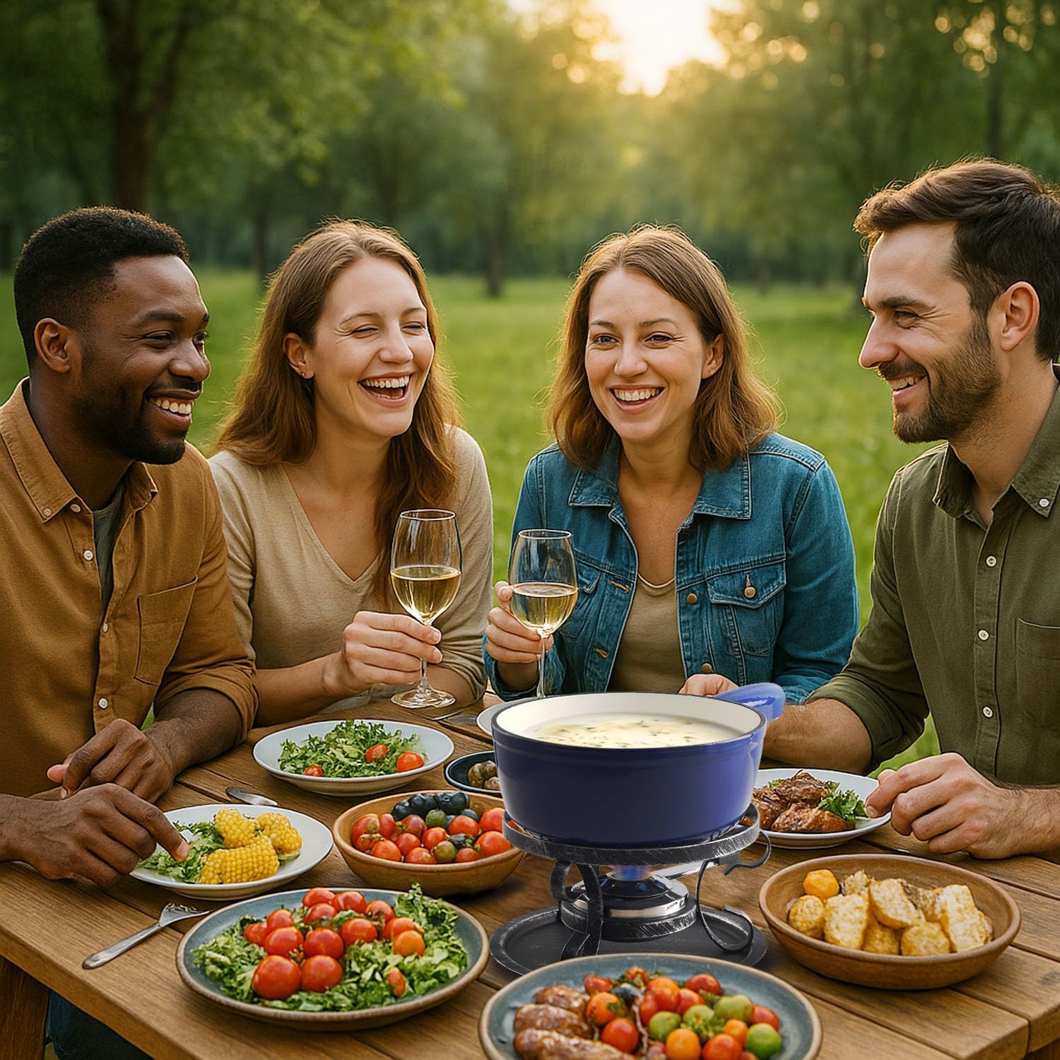 - CLASSY FONDUE ENTERTAINNING - Artestia Cast Iron Fondue Set brings the old, authentic way of making luscious fondue – but made more conveniently! It features a super sleek and portable design that allows you to create an elegant centerpiece for your table setting - perfect for entertaining, dinner parties, and special occasions