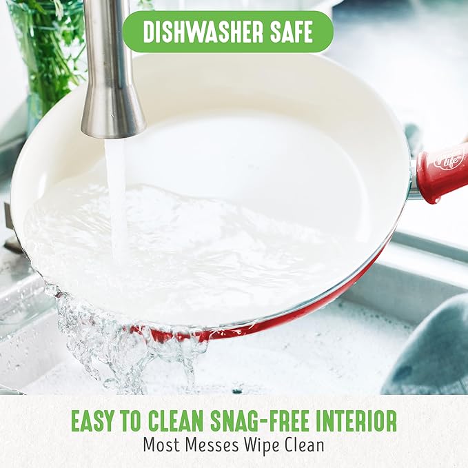 - TOXIN-FREE CERAMIC NONSTICK COATING: Our easy-to-clean ceramic nonstick delivers effortless release and is free of PFAS, PFOA, lead, and cadmium for healthier cooking every day.