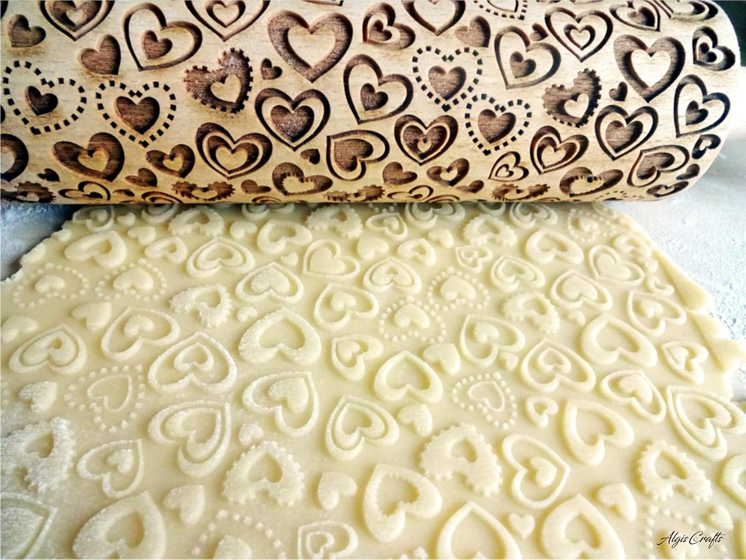 HEARTS EMBOSSING ROLLING PIN WOODEN ROLLING PIN for EMBOSSED COOKIES with LOVE HEARTS
