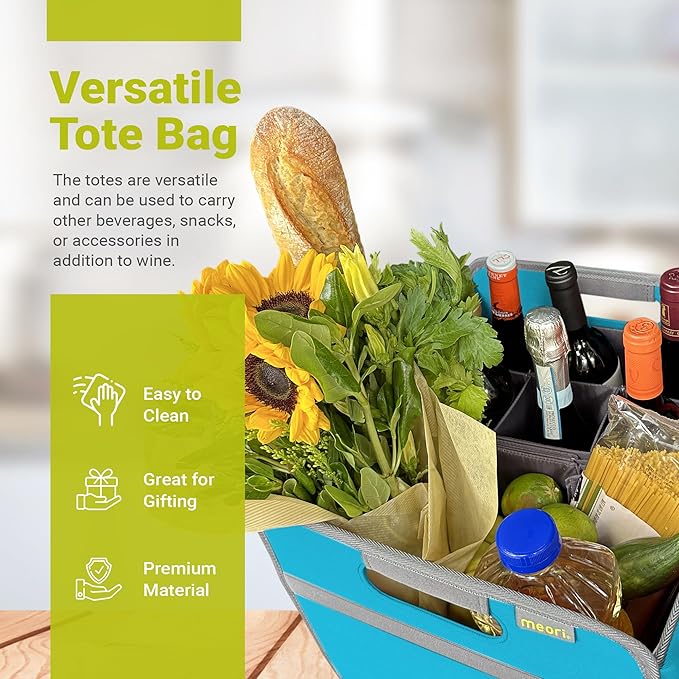- Repurpose It - These are not just bags to carry wine. meori’s folding carrier bag also doubles as a container for your grocery hauls or a storage bin for your cars. Its thoughtful design lets you bring your bottles or glasses to and from dinner parties or outings, too.