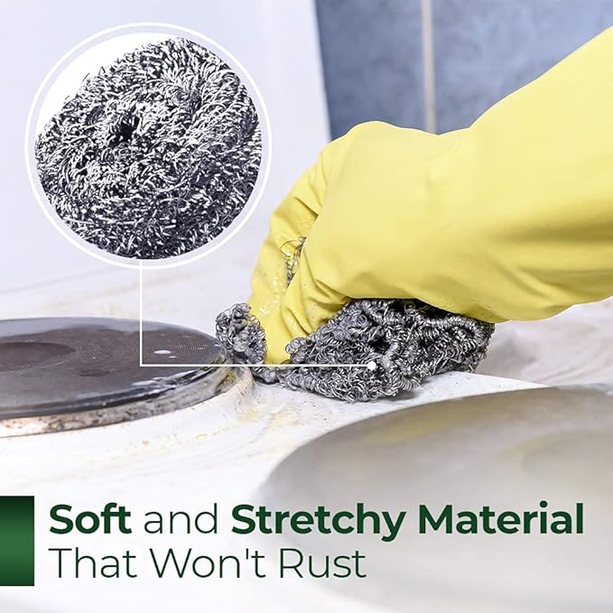 - IMPRESSIVE DURABILITY: Lasting you for months on end, these scrubbers are 100% rust-resistant. In fact, they won’t even rust if they are left in a pool of water all day! You can also safely toss them in the dishwasher for a good rinsing.