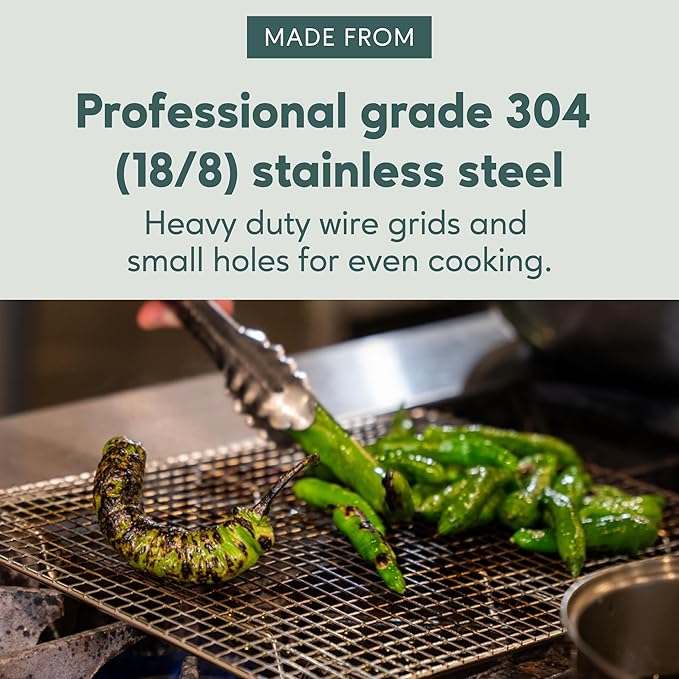 - OVEN-SAFE ALLOWS FOR MULTIPLE USES: Safe for oven-use up to 575 degrees Fahrenheit; Ultra Cuisine's cooling rack is designed for oven use so you can confidently roast, bake, grill, smoke, dry, and bbq; all this is possible due to the high heat tolerance of the 100% stainless steel design