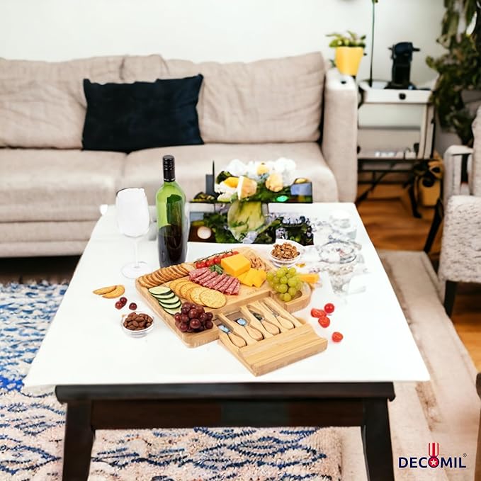 DECOMIL - Bamboo Cheese Board and Knife Set, Charcuterie Set, Cheese Board and Cutlery Set, Cheese Cutting Board,%100 Bamboo and Durable