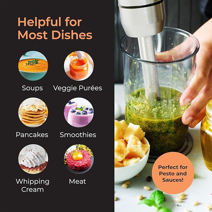 - No More Lumpy Chunks – Mix, blend, whisk, and froth quickly with our slim yet powerful immersion blender. Includes detachable accessories to make smoothies, whipped cream, even beaten eggs.