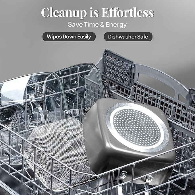 - Effortless Cleanup, Dishwasher Safe: Spend less time with cleanup! After all the cooking and prepping is done, place cookware in the dishwasher for quick and easy cleanup.