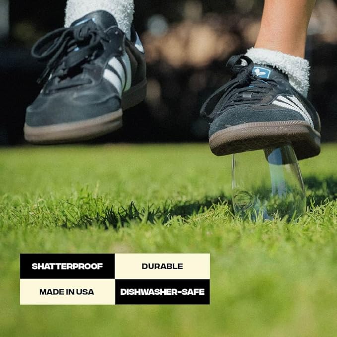 - THE ORIGINAL SHATTERPROOF WINE GLASS – Durable for wherever the fancy glass can’t go. Drop it, throw it, step on it. Some call it an unbreakable glass.