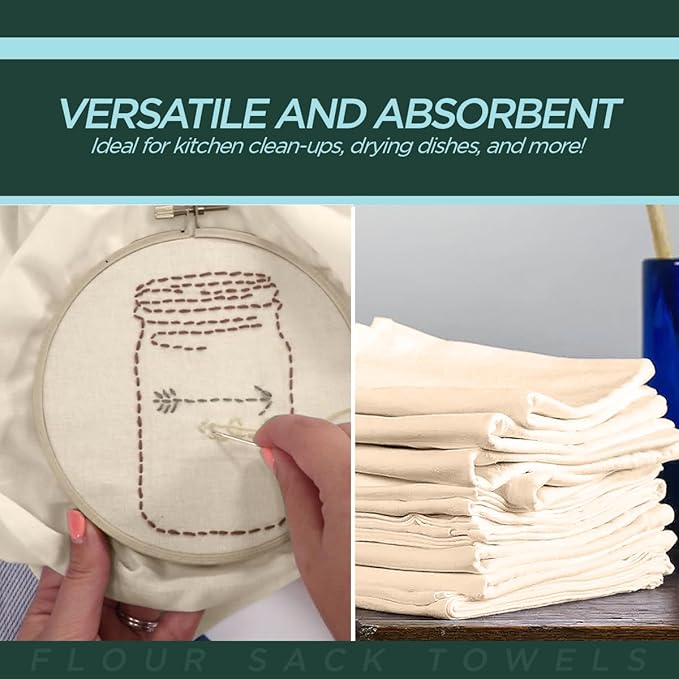 - Washing them before using improves the absorbency. Our organic flour sack towels are best for embroidery too.