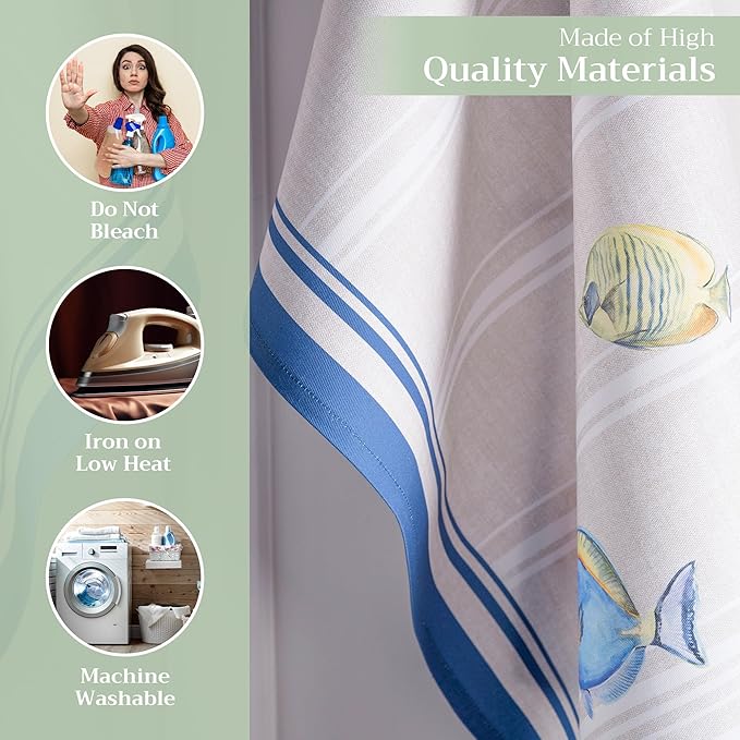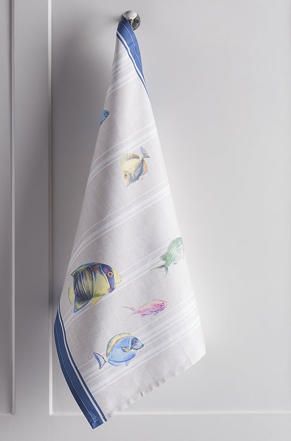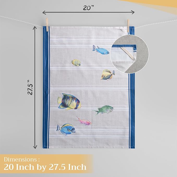 Maison d' Hermine Kitchen Towels Set of 3 100% Cotton 27.50" x 20" Reusable Cloth Tea Dish Towels Absorbent with Hanging Loop for Kitchen, Home, Dining, Cocktail Parties Spring/Summer (Poisson)