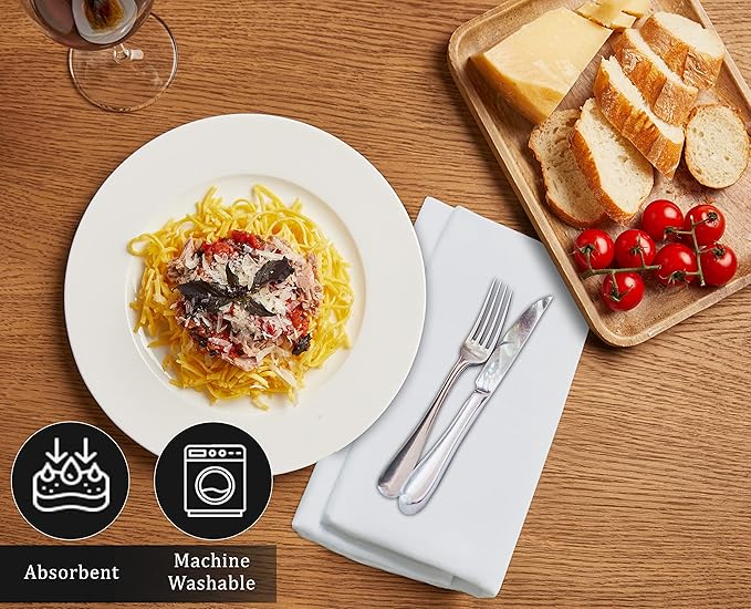 Ruvanti Cloth Napkins set of 12, 18x18 Inches Napkins Cloth Washable, Soft, Durable, Absorbent, Cotton Blend. Table Dinner Napkins Cloth for Hotel, Lunch, Restaurant, Weddings, Events, Parties - White