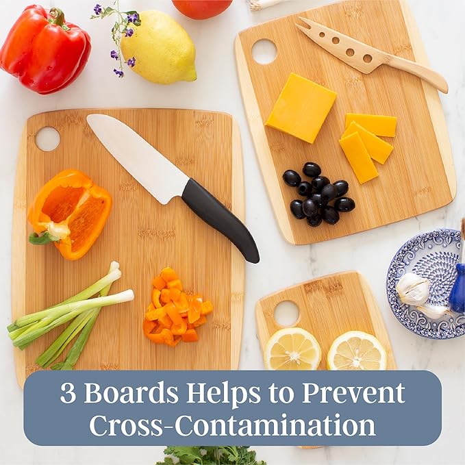 - Three Essential Sizes — Includes large (14"), medium (11"), and small (8") cutting boards for everything from family meal prep to quick snack slicing