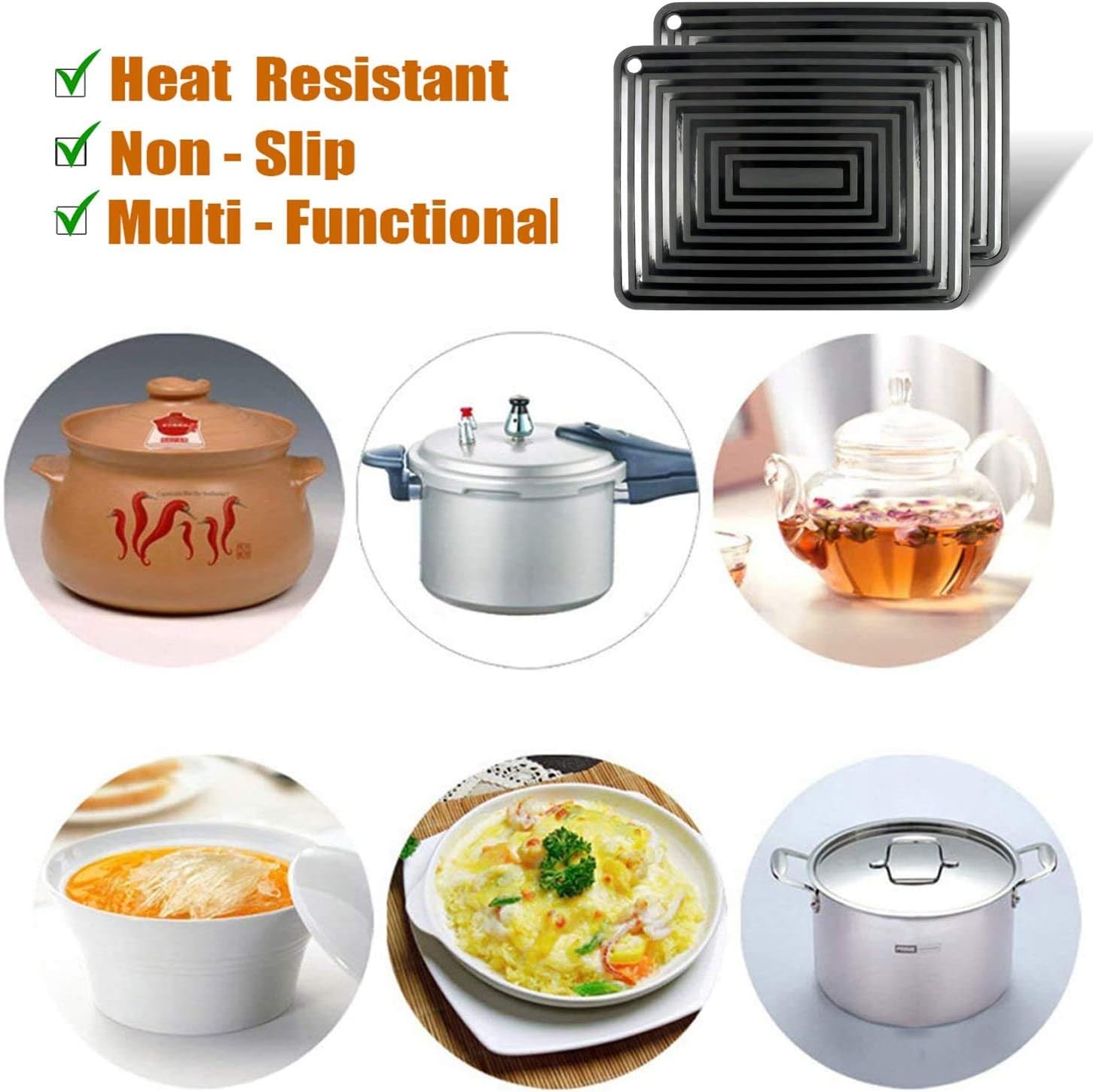 - ☑️ 【Premium Food-Grade Silicone】The pot holder made up of non-slip food-grade durable flexible silicone material,they won¡¯t stain, mold or absorb odors. It¡¯s safe to use in and out of the kitchen.