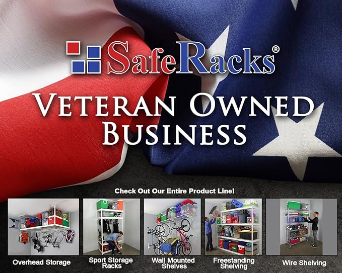 - ABOUT US: SafeRacks is a top-rated, veteran owned brand in the garage storage industry, offering amazing versatility with our ceiling racks for garage storage. Our products are designed with maximum strength and durability in mind, providing you with the best storage solution for your garage. Our ceiling-mount garage storage rack comes in various sizes to suit any garage.