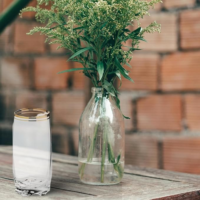 13.25 Oz Gold Glass Cup (Set of 6) - Elegant Drinking Glasses with Gold Accented Rim, Durable Glassware for Entertaining, Dining, Everyday Use - Ideal for Cocktails & Beverages