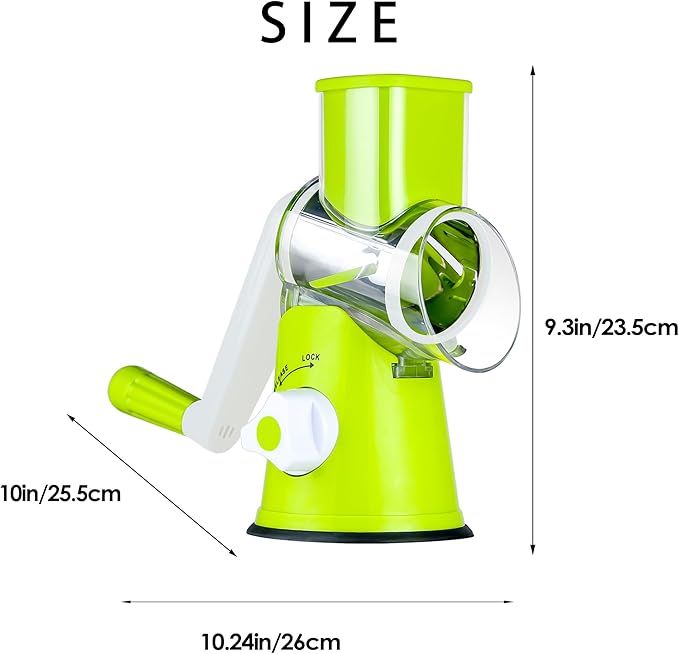 Ourokhome Rotary Cheese Grater Hand Crank, Kitchen Shredder Speed Mandolin Slicer Nut Grinder with Handle and Drum Blades for Cheese, Vegetable, Walnut, Chocolate, Potato, Carrot, 3 Blades, Green