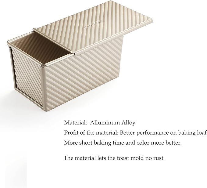 monfish Pullman Loaf Pan w Cover Bread Toast Mold corrugated loaf Pan w lid 1lb dough Alluminumed Steel Non Stick Gold (8.5X4.75X4.375INCH)