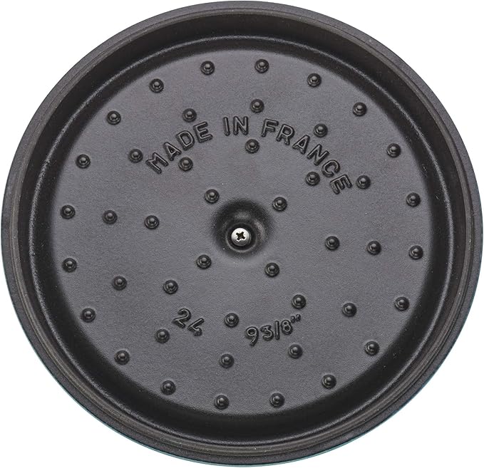 - LOCKS IN FLAVOR AND MOISTURE: Cast iron tight-fitting lid features self-basting spikes that create a rain-forest effect, evenly returning juices to the food for tender, flavorful results.