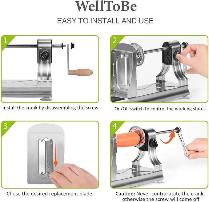 WellToBe 6-Blade Vegetable Spiralizer Spiral Slicer Veggie Pasta Spaghetti Maker for Healthy Low Carb/Paleo/Gluten - 304 Food Stainless Steel Body