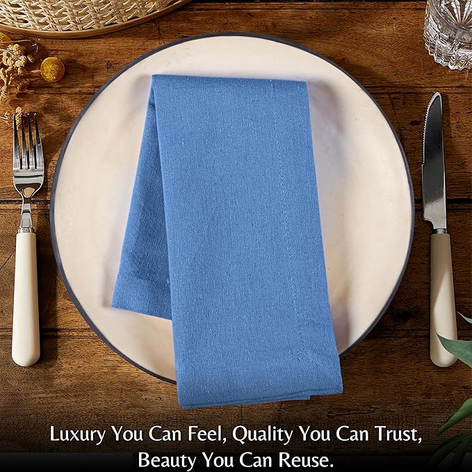 Ramanta Home Light Blue Cotton Dinner Napkins Set of 12 | 100% Cotton 18x18 Inch Cloth Napkins | Reusable Fabric Table Napkins for Everyday Use, Parties, Weddings, Thanksgiving, Christmas, Halloween