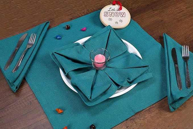 Ramanta Home Teal Cotton Dinner Napkins Set of 12 | 100% Cotton 18x18 Inch Cloth Napkins | Reusable Fabric Table Napkins for Everyday Use, Parties, Weddings, Thanksgiving, Christmas, Halloween